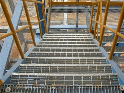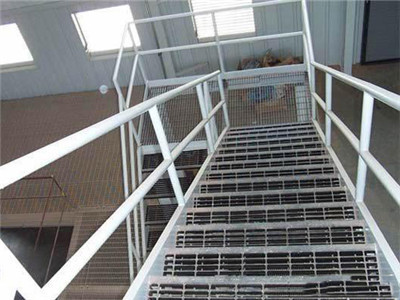 樓梯鋼格板是由鋼格板加工而成的(鋼格板是用扁鋼按照一定的間距和橫桿進行交叉排列,并且焊接成中間帶有方形格子的一種鋼鐵制品)。該產品表面一般用熱鍍鋅、電鍍鋅處理。